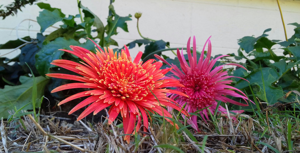 Gerbers look like something I’d eat if I were a slug, however, they don’t even point their eye stalks at them. Gerbers die down during the dry season, but, just when you’ve forgotten you’d planted them next to the ixora, they shout, “LOOK MUH HEY!” at the next rains.
