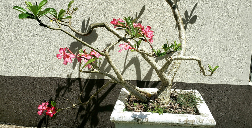 Returning to Barbados, I realised everybody and duh granmudduh had a desert rose. With the water shortages it became clear why (it’s in the name). You’re more likely to kill this plant by giving it too much water. Diffierentiate yourself “by de hook or de crook” with a black one: